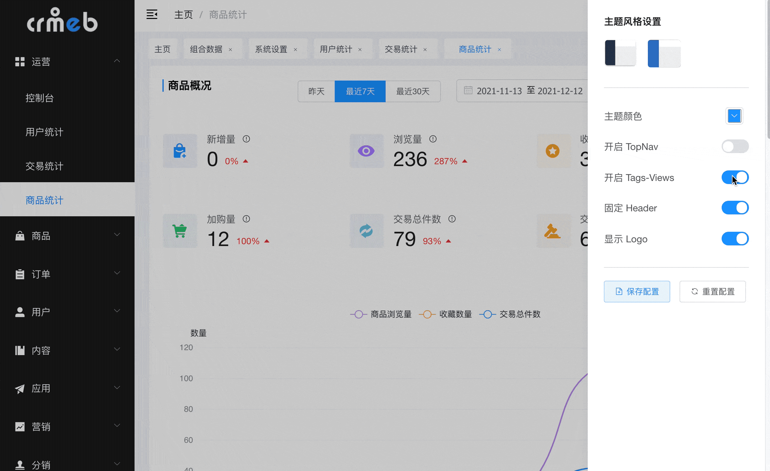 >7.数据统计分析,使用ECharts图表统计,实现用户、产品、订单、资金等统计分析。